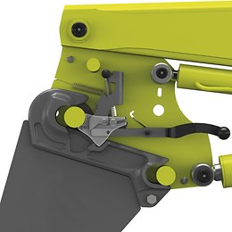 Die Vorverriegelung sichert die Verbindung vor der kompletten Verriegelung des FL und FL C Frontladers. Die FL E Baureihe verfügt über ein vereinfachtes FITLOCK mit einem einstufigen, manuellen Verriegelungssystem.